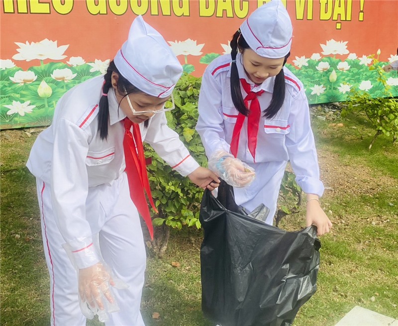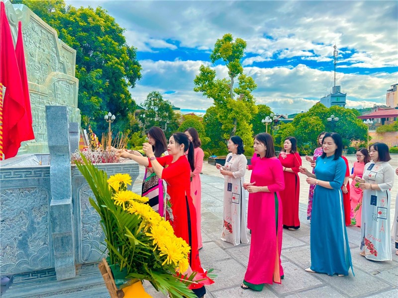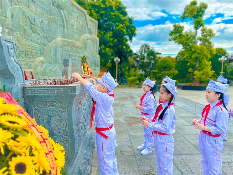 Tiểu học Quang Trung dâng hương chăm sóc đài tưởng niệm Bác Hồ nhân dịp năm học mới 2023 - 2024