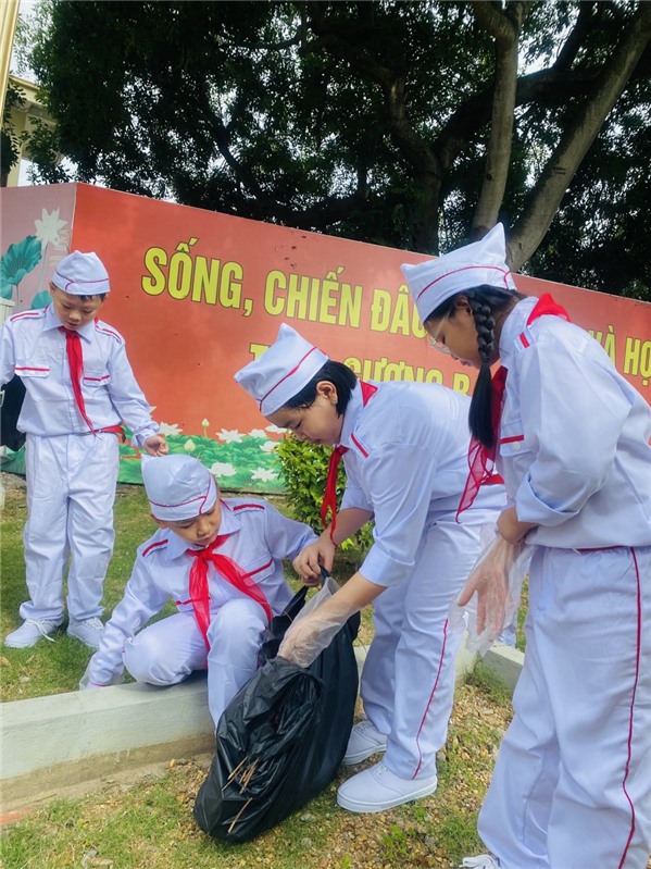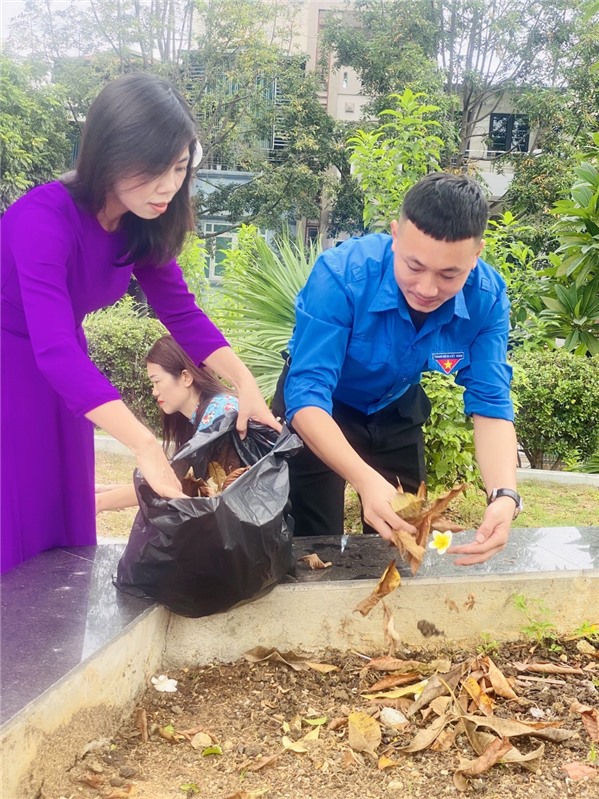 Tiếp đó, đoàn đại biểu Trường Tiểu học Quang Trung đã tiến hành dọn vệ sinh, chăm sóc khuôn viên Di tích lịch sử lưu niệm kỷ niệm sự kiện Bác Hồ về thăm Uông Bí.