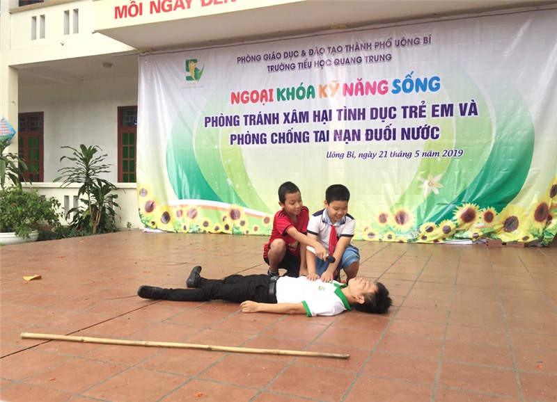 Ngày 21-5, Trường Tiểu học Quang Trung phối hợp với Trung tâm Kỹ năng sống SepViet tổ chức chương trình ngoại khóa kỹ năng sống phòng tránh xâm hại và phòng chống tai nạn đuối nước cho hơn 1.000 em học sinh.