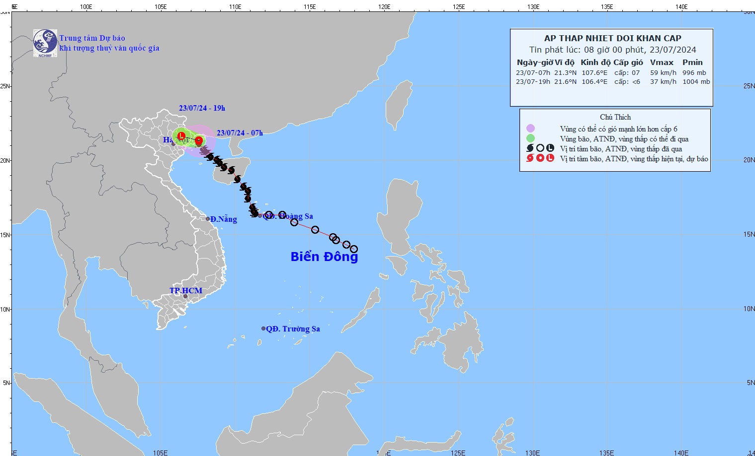 TIN ÁP THẤP NHIỆT ĐỚI KHẨN CẤP (SUY YẾU TỪ CƠN BÃO SỐ 02)- cập nhật 08h00' ngày 23/7