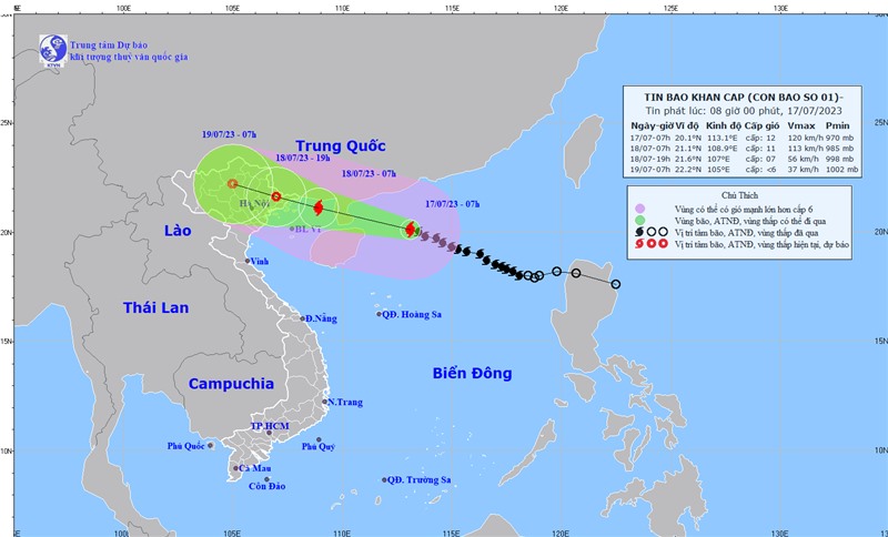 TIN BÃO KHẨN CẤP (CƠN BÃO SỐ 1) - cập nhật lúc 08h00 ngày 17/7
