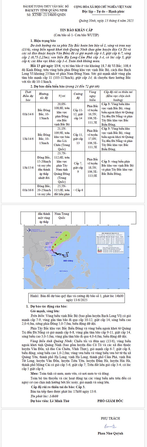Tin bão khẩn cấp (Cơn bão số 1- Cơn bão WUTIP) - Tin phát lúc 14h00'