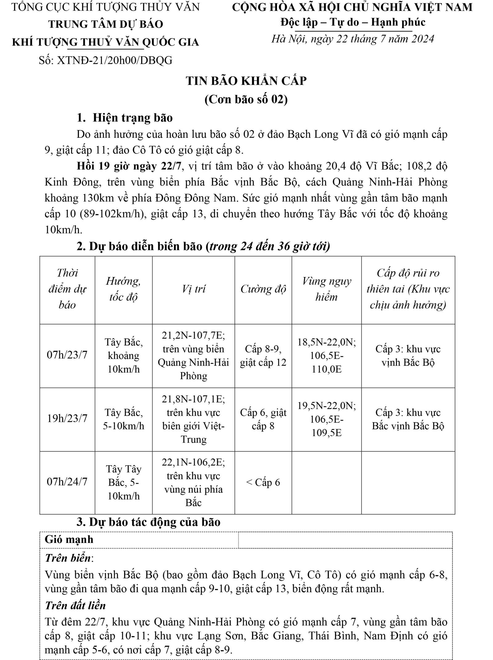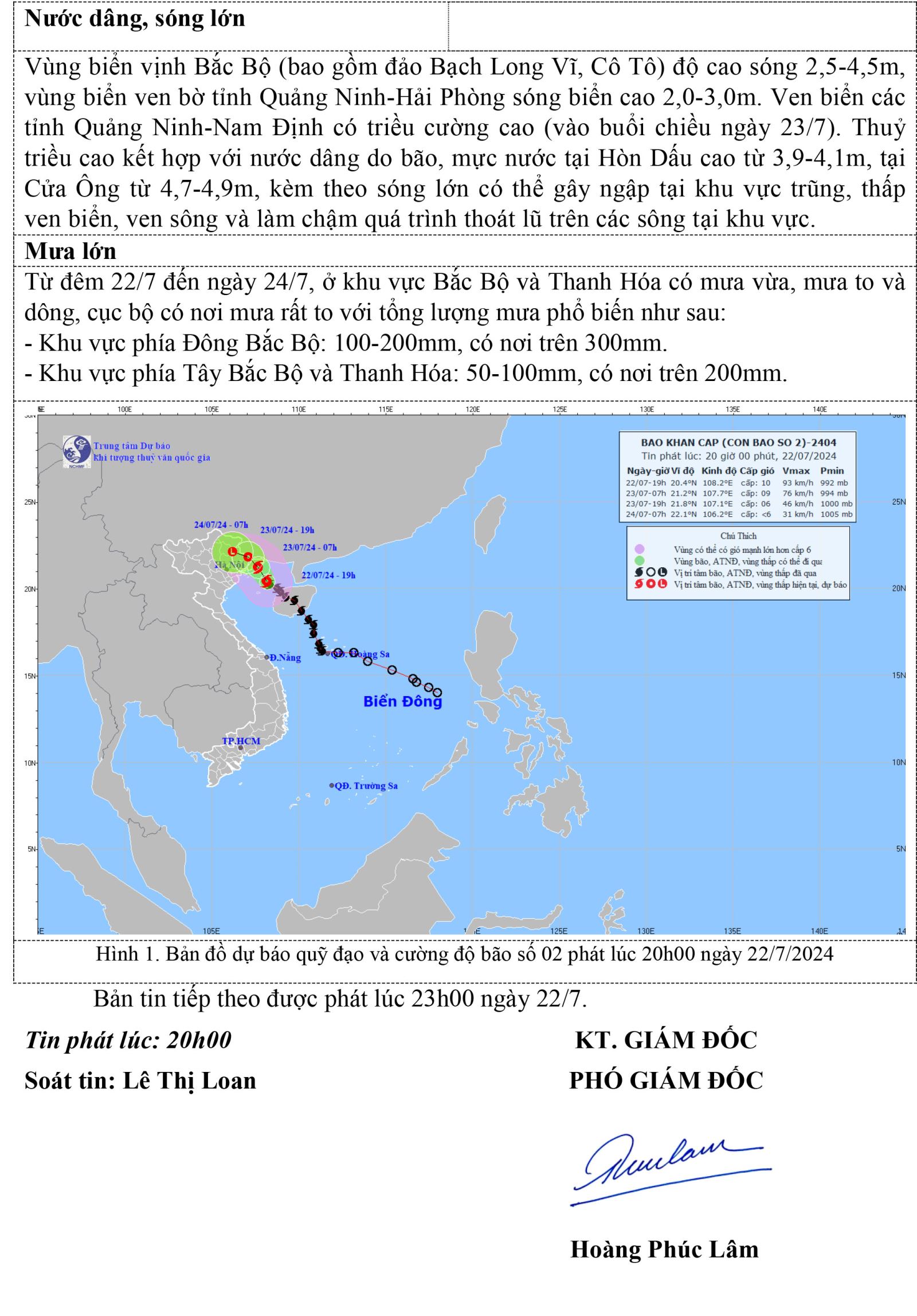 TIN BÃO KHẨN CẤP (CƠN BÃO SỐ 2) cập nhật 20h00' ngày 22/7