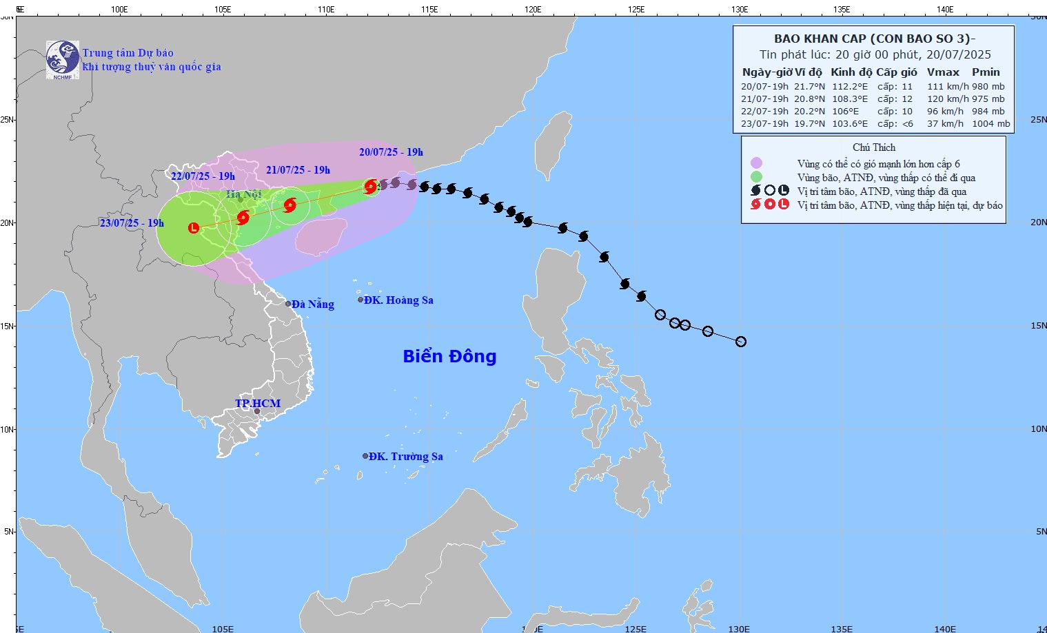 TIN BÃO KHẨN CẤP (Cơn bão số 3) - Tin phát lúc: 20h00' ngày 20/7