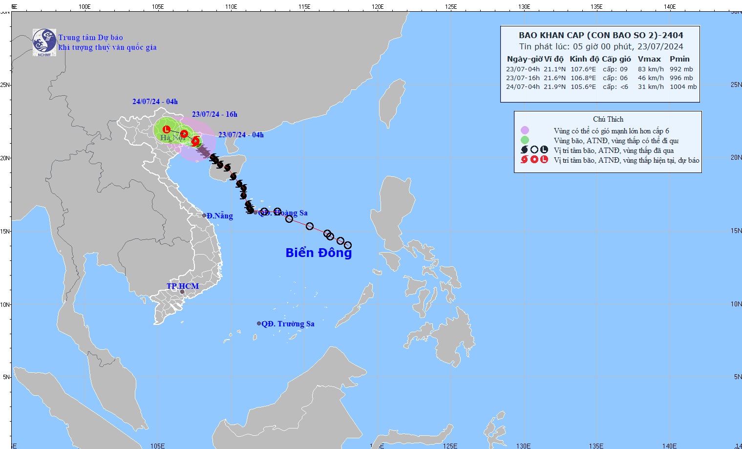 TIN BÃO KHẨN CẤP (CƠN BÃO SỐ 02)- cập nhật 05h00' ngày 23/7