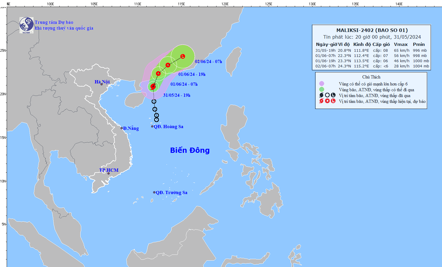 TIN BÃO TRÊN BIỂN ĐÔNG (CƠN BÃO SỐ 01) (cập nhật lúc 19h00 ngày 31/5/2024)