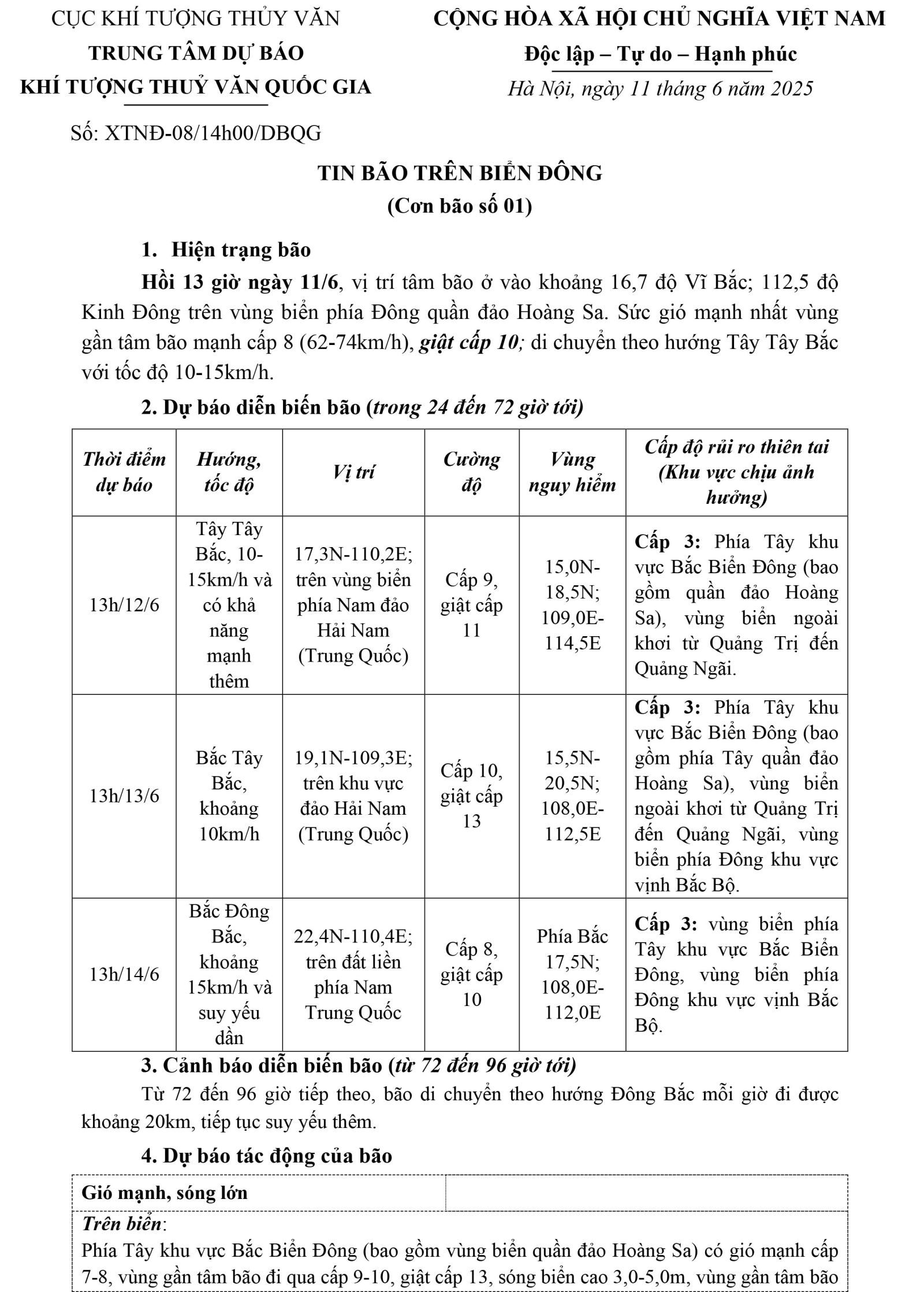 Tin bão trên biển đông (Cơn bão số 01) - Cập nhật lúc 14h00'