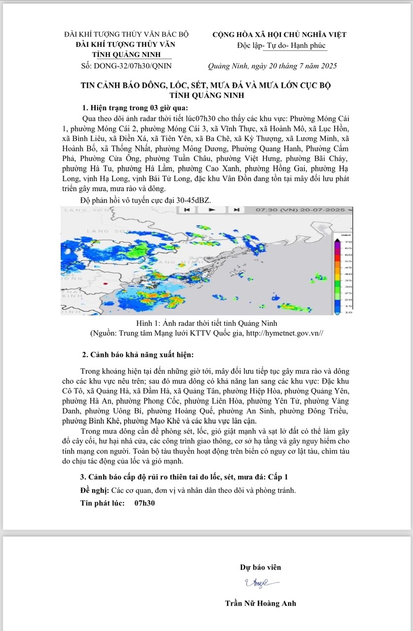 Tin cảnh báo dông, lốc, sét, mưa đá và mưa lớn cục bộ tỉnh Quảng Ninh - Bản tin phát lúc 7h30'