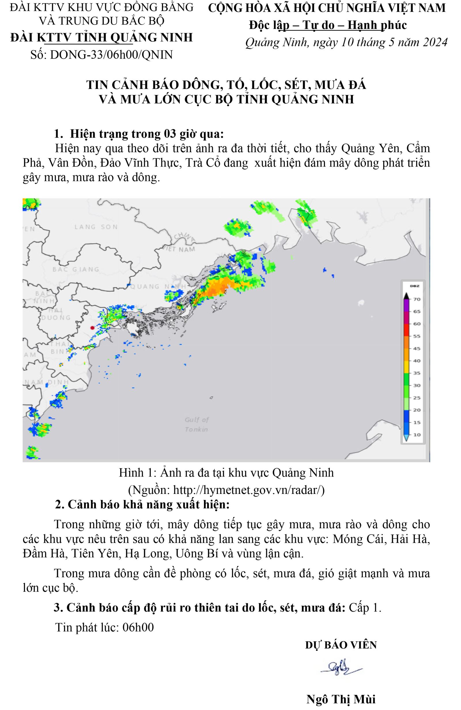 Tin cảnh báo dông, tố, lốc, sét, mưa đá và mưa lớn cục bộ tỉnh Quảng Ninh