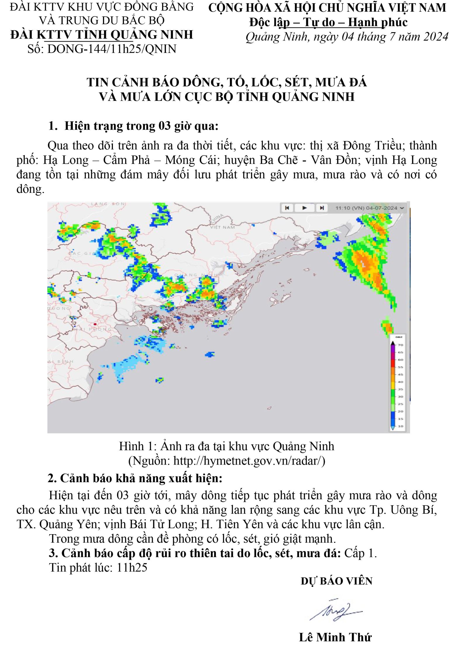 Tin cảnh báo dông, tố, lốc, sét, mưa đá và mưa lớn cục bộ tỉnh Quảng Ninh