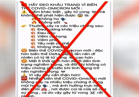 Trên mạng xã hội, một số hội nhóm chia sẻ nội dung: "Biến thể COVID-Omicron mới độc hơn biến thể Delta gấp 5 lần nên dĩ nhiên có tỉ lệ tử vong cao hơn". Đại diện Bộ Y tế khẳng định "chưa có thông tin về việc phát hiện biến thể COVID-19 mới".