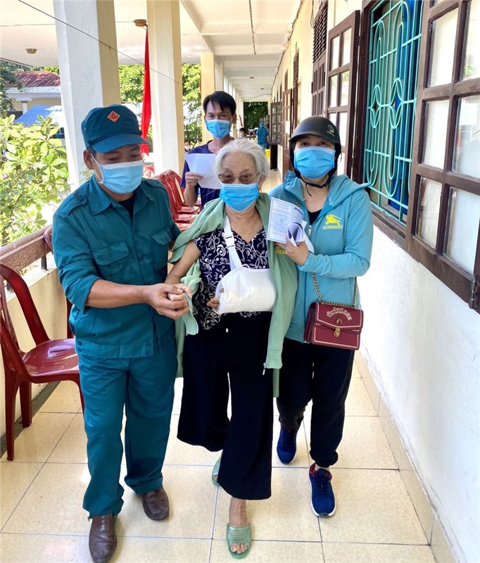 Các lực lượng tích cực hỗ trợ người dân đến tiêm chủng.