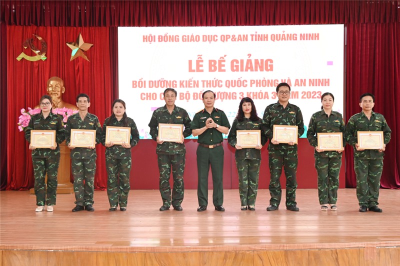 Phát biểu tại Lễ bế giảng, Đại tá Nguyễn Quang Hiến, Phó Bí thư Thường trực Đảng ủy, Chính ủy Bộ CHQS tỉnh, Ủy viên Hội đồng giáo dục QPAN tỉnh Quảng Ninh, đề nghị: Trên cơ sở những kiến thức được học tập, bồi dưỡng, các học viên tiếp tục nghiên cứu, vận dụng tốt vào điều kiện cụ thể của cơ quan, đơn vị mình; tham mưu cho cấp ủy, chính quyền các cấp về công tác QPAN, nhất là vấn đề trực tiếp liên quan đến xây dựng khu vực phòng thủ cấp huyện, cấp xã; qua đó góp phần xây dựng nền quốc phòng toàn dân gắn với nền an ninh nhân dân.