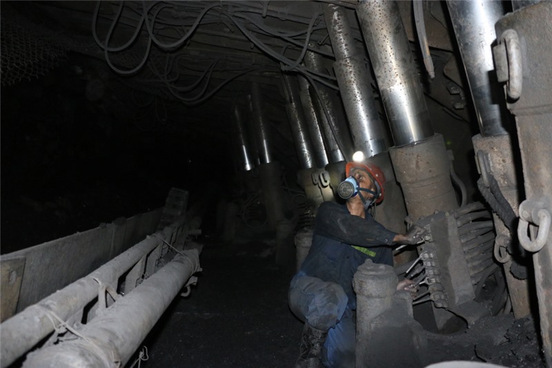 Công nhân Công ty Than Dương Huy điều khiển giàn chống lò chợ cơ giới hóa.