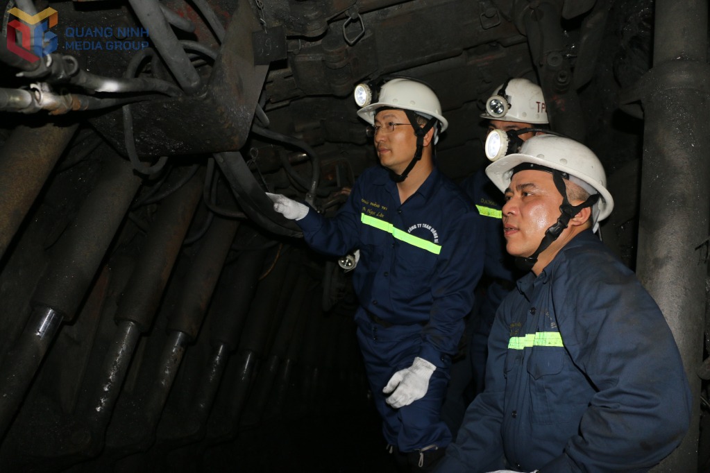 Lãnh đạo Công ty Than Uông Bí kiểm tra tình hình sản xuất trong lò chợ.