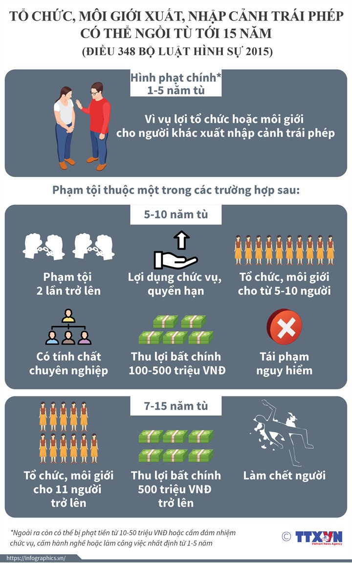 Tổ chức, môi giới xuất, nhập cảnh trái phép có thể ngồi tù tới 15 năm