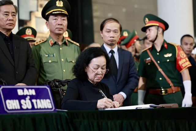 Thường trực Ban Bí thư Trương Thị Mai ghi sổ tang - Ảnh: VGP/PL