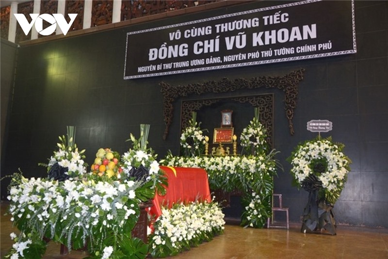Tổng Bí thư Nguyễn Phú Trọng; Thủ tướng Chính phủ Phạm Minh Chính; nguyên Chủ tịch nước Trần Đức Lương, Nguyễn Minh Triết gửi vòng hoa viếng nguyên Phó Thủ tướng Vũ Khoan.