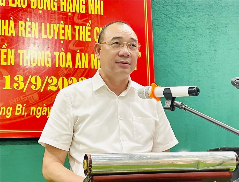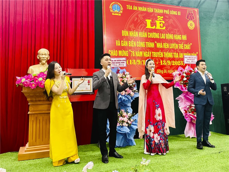 Tòa án Nhân dân thành phố Uông Bí tổ chức Lễ đón nhận Huân chương Lao động hạng Nhì và gắn biển công trình “Nhà rèn luyện thể chất”