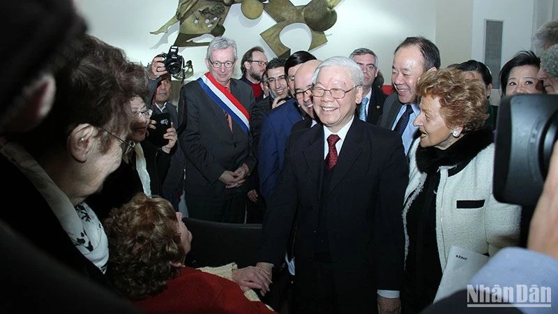 Tổng Bí thư Nguyễn Phú Trọng gặp gỡ những người bạn Pháp vô cùng thân thiết và gắn bó với Việt Nam tại thành phố Choisy-le-Roi ngày 26/3/2018 trong khuôn khổ chuyến thăm chính thức Cộng hòa Pháp. (Ảnh: KHẢI HOÀN)