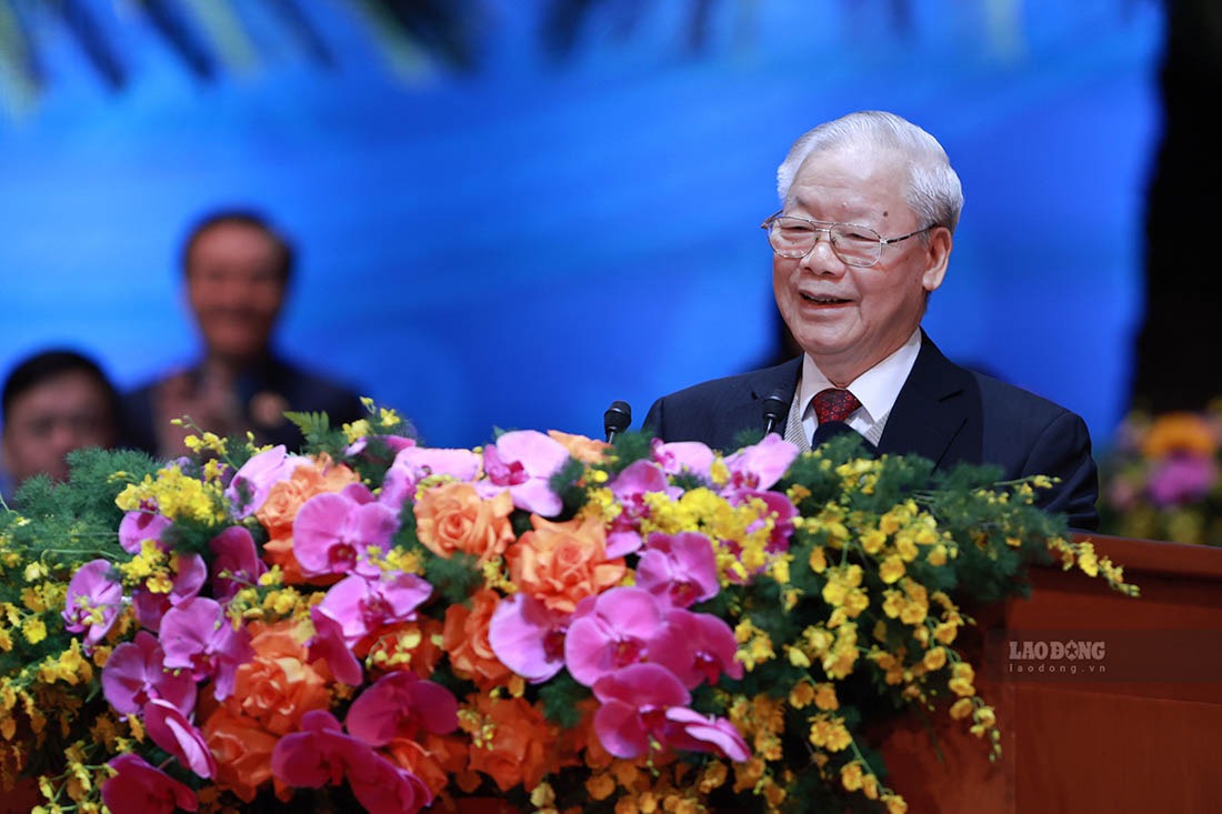 Trong bài phát biểu, Tổng Bí thư Nguyễn Phú Trọng khẳng định, trải qua hơn 94 năm xây dựng, hoạt động, trưởng thành và phát triển, chúng ta có quyền tự hào và khẳng định rằng, dưới sự lãnh đạo của Đảng, Công đoàn Việt Nam đã không ngừng lớn mạnh, tuyệt đối trung thành với Đảng và giai cấp, có những đóng góp xứng đáng vào thắng lợi vĩ đại của cách mạng, góp phần quan trọng xây dựng giai cấp công nhân Việt Nam ngày càng lớn mạnh. Trong giai đoạn đất nước đẩy mạnh công nghiệp hóa, hiện đại hóa và hội nhập quốc tế toàn diện, sâu rộng hiện nay, vai trò, vị thế của tổ chức Công đoàn càng được khẳng định, phát huy mạnh mẽ hơn bao giờ hết.