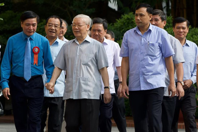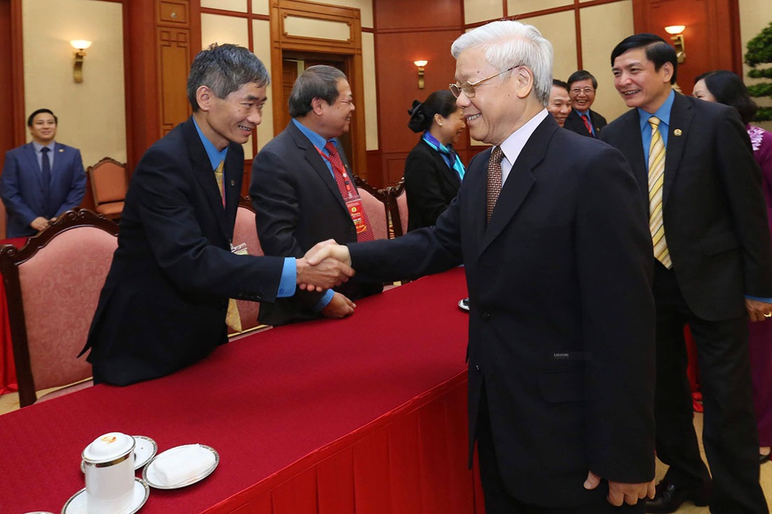 Tổng Bí thư Nguyễn Phú Trọng dự sự kiện gặp mặt 30 cá nhân, tập thể Vinh quang Việt Nam năm 2017. Chương trình Vinh quang Việt Nam do Tổng Liên đoàn Lao động Việt Nam giao Báo Lao Động tổ chức. Ảnh: Hải Nguyễn