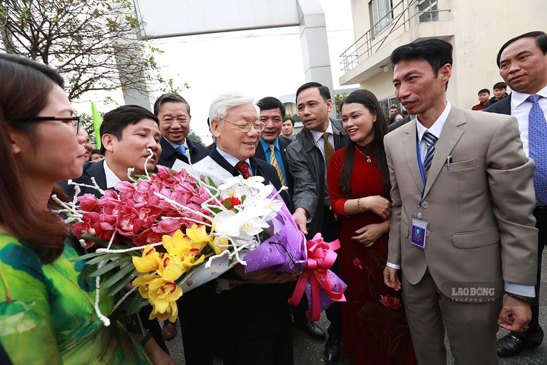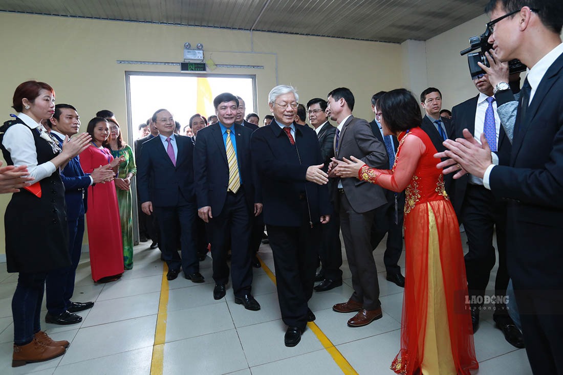 Tổng Bí thư Nguyễn Phú Trọng thăm và tặng quà công nhân lao động tỉnh Hưng Yên, năm 2018. Ảnh: Hải Nguyễn