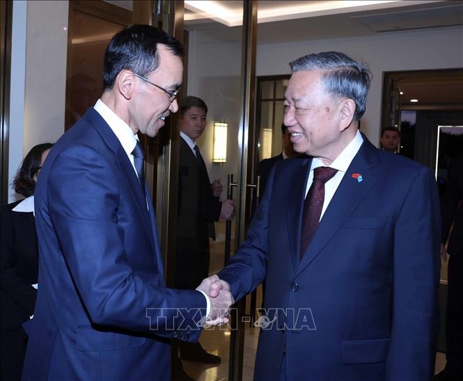 Tổng Bí thư Tô Lâm bày tỏ vui mừng dẫn đầu Đoàn đại biểu cấp cao Việt Nam thăm cấp Nhà nước Kazakhstan, người bạn thủy chung của Việt Nam; bày tỏ cảm động trước sự đón tiếp trọng thị, chu đáo, nồng hậu của Lãnh đạo và nhân dân Kazakhstan dành cho Đoàn khi Tổng thống Kassym-Jomart Tokayev đón tại sân bay và sau đó có cuộc hội kiến này. Nhân dịp này, Tổng Bí thư Tô Lâm chân thành cảm ơn Kazakhstan đã giúp đỡ chí tình Việt Nam trong sự nghiệp giải phóng dân tộc trước đây và công cuộc xây dựng và phát triển đất nước ngày nay. Tổng Bí thư nhấn mạnh chuyến thăm vào thời điểm lịch sử khi Việt Nam kỷ niệm 50 năm chiến thắng 30/4/1975 và Kazakhstan kỷ niệm 80 năm chiến thắng phát xít, mà nếu không có chiến thắng phát xít thì không thể có Cách mạng tháng Tám và không có Việt Nam của ngày hôm nay. Tổng Bí thư chúc mừng những thành tựu to lớn mà nhân dân Kazakhstan đạt được dưới sự lãnh đạo của Tổng thống Kassym-Jomart Tokayev và các nhà Lãnh đạo Kazakhstan với tầm nhìn chiến lược để Kazakhstan phát triển kinh tế - xã hội và vị thế quốc tế ngày càng nâng cao. Tổng Bí thư cho biết Việt Nam mong muốn trao đổi kinh nghiệm với Kazakhstan để bổ sung cho nhau cùng phát triển và quan hệ song phương sẽ là cầu nối cho hai nước đến hai lục địa châu Âu và châu Á, đóng góp cho hòa bình, hợp tác và phát triển ở khu vực và trên thế giới.