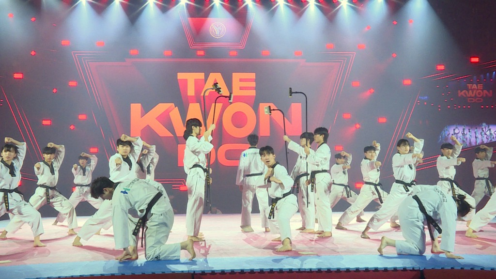 Các VĐV Hàn Quốc biểu diễn Taekwondo tại buổi tổng duyệt.