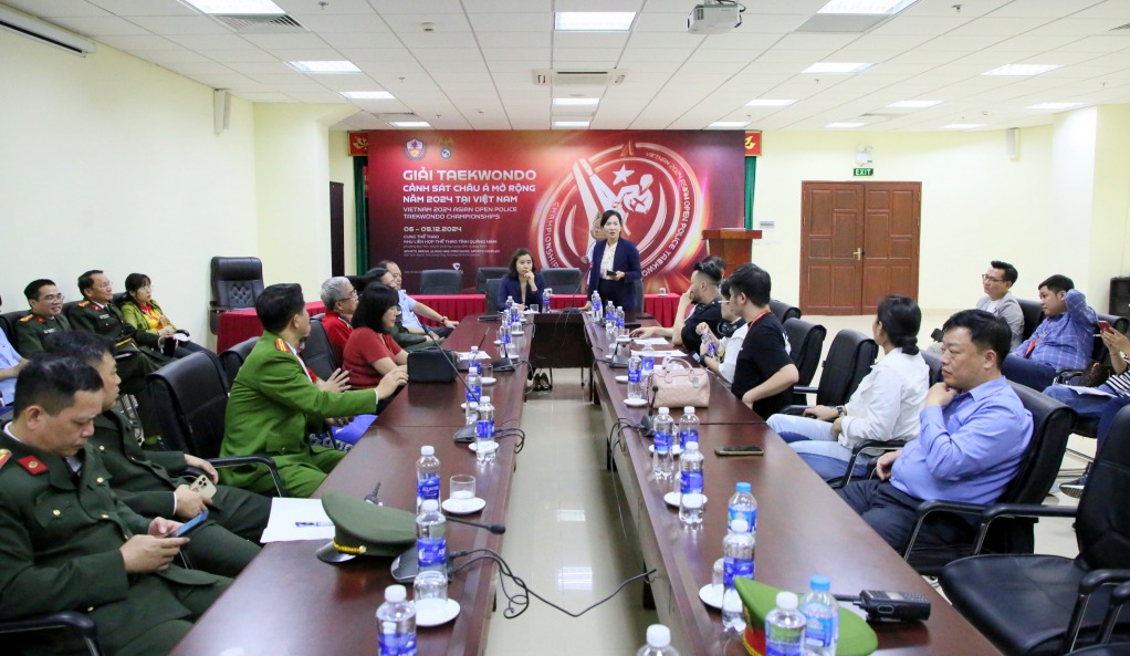 Ban Tổ chức Giải Taekwondo Cảnh sát Châu Á mở rộng năm 2024 tổ chức họp rút kinh nghiệm sau buổi tổng duyệt.