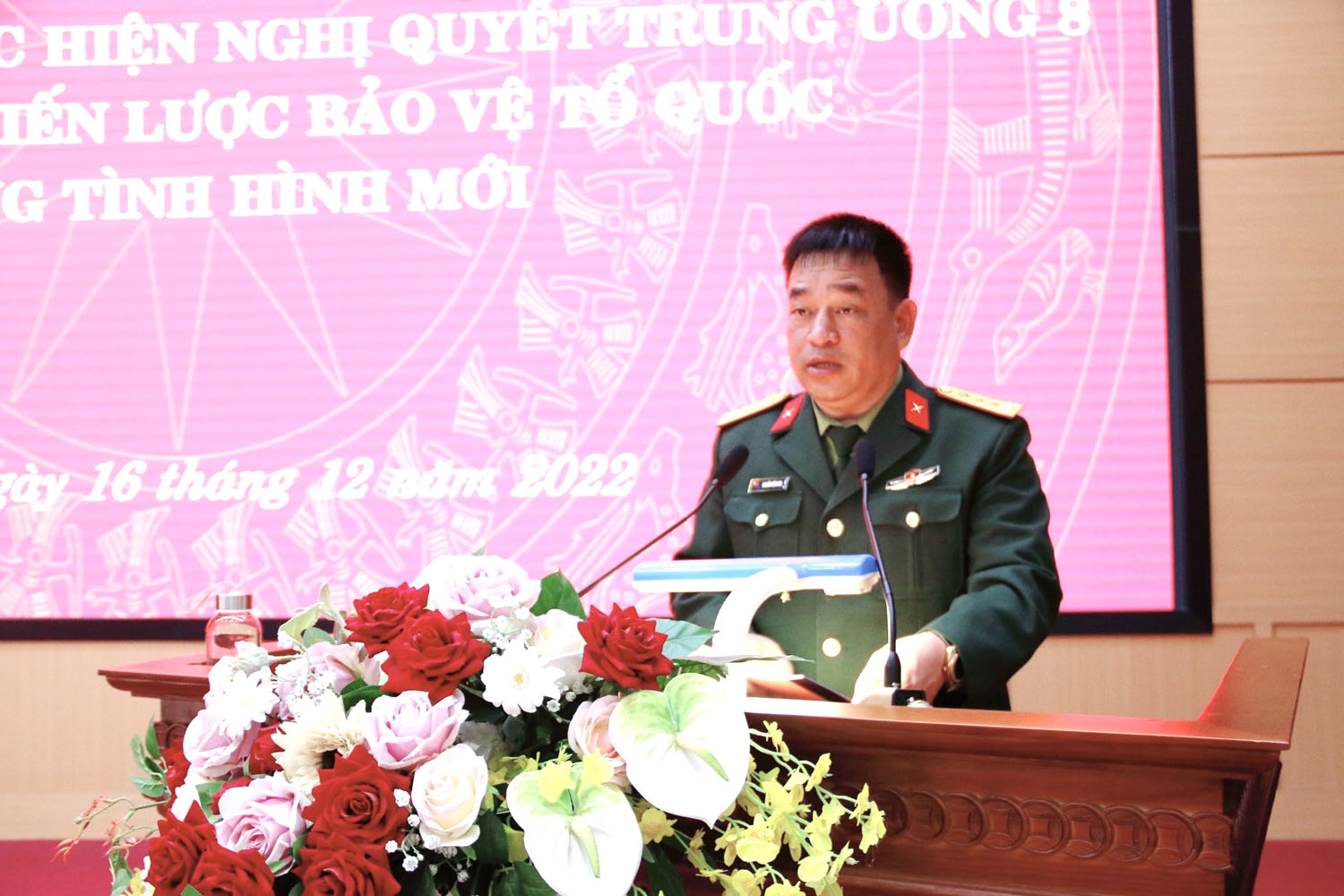 Thượng tá Nguyễn Tiến Vinh, UVBTV Thành uỷ, Chỉ huy trưởng Ban Chỉ huy Quân sự thành phố báo cáo tại hội nghị.