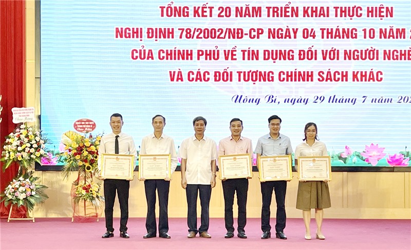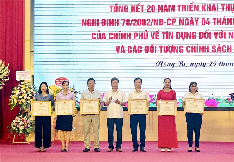 Tại hội nghị tổng kết, Tổng giám đốc NHCSXH đã khen thưởng 3 tập thể và 7 cá nhân; UBND thành phố khen thưởng 5 tập thể và 10 cá nhân có thành tích trong triển khai thực hiện tín dụng chính sách đối với người nghèo và các đối tượng chính sách khác theo Nghị định số 78/2002/NĐ-CP.