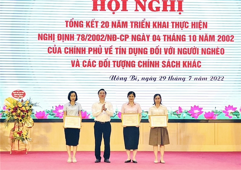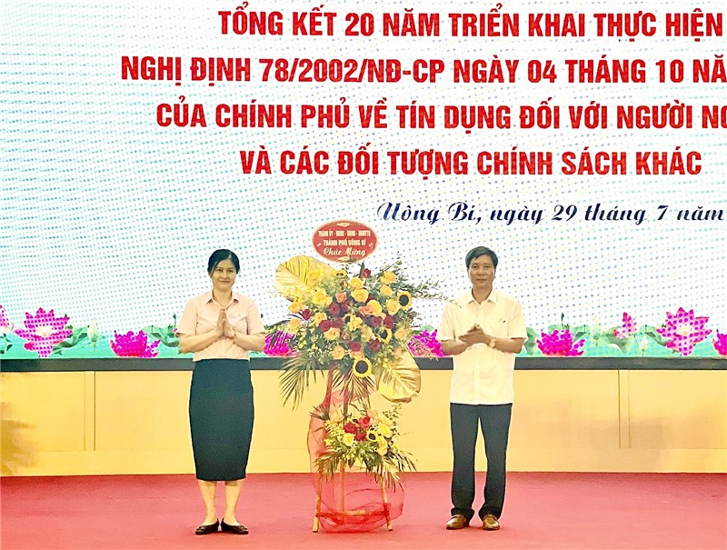 Ngày 29/7, UBND thành phố Uông Bí tổ chức hội nghị tổng kết 20 năm triển khai Nghị định 78/2002/NĐ-CP ngày 4 tháng 10 năm 2002 của Chính phủ về tín dụng ưu đãi đối với người nghèo và các đối tượng chính sách khác trên địa bàn. Dự hội nghị có các đồng chí: Hoàng Văn Hải, UV BCH Trung ương Đoàn, Bí thư Tỉnh đoàn, Chủ tịch Hội LHTN tỉnh Quảng Ninh, thành viên Ban đại diện HĐQT Ngân hàng chính sách xã hội (NHCSXH) tỉnh; Nguyễn Văn Thành, Uỷ viên BTV Thành ủy, Phó Chủ tịch Thường trực UBND thành phố, Trưởng Ban đại diện HĐQT NHCSXH thành phố. Dự hội nghị còn có các thành viên Ban đại diện HĐQT NHCSXH thành phố; đại diện các phòng, ban, đơn vị, hội nhận ủy thác các cấp; lãnh đạo UBND các xã, phường; tổ vay vốn, hộ vay vốn tiêu biểu.