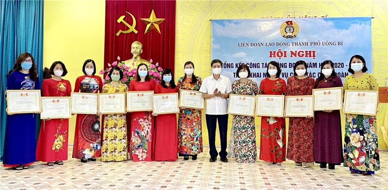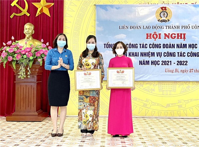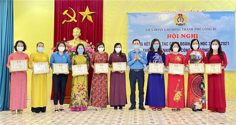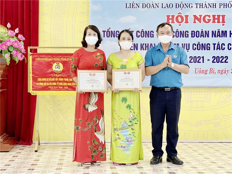 Lãnh đạo TP Uông Bí khen thưởng các tập thể, cá nhân có thành tích trong phong trào thi đua Lao động giỏi và xây dựng tổ chức Công đoàn vững mạnh năm học 2020-2021.