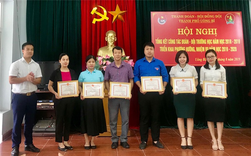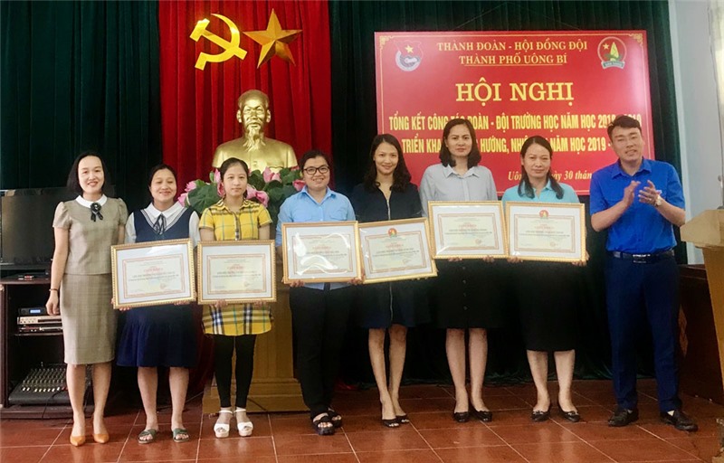 Lãnh đạo Thành Đoàn Uông Bí trao Bằng khen của BCH Trung ương Đoàn TNCS Hồ Chí Minh cho Liên đội Trường Tiểu học Yên Thanh do có thành tích xuất sắc trong phong trào “Viết, đọc, làm theo Báo Đội và xây dựng Đội vững mạnh”.