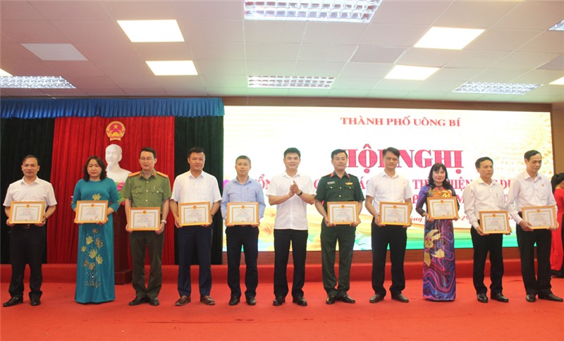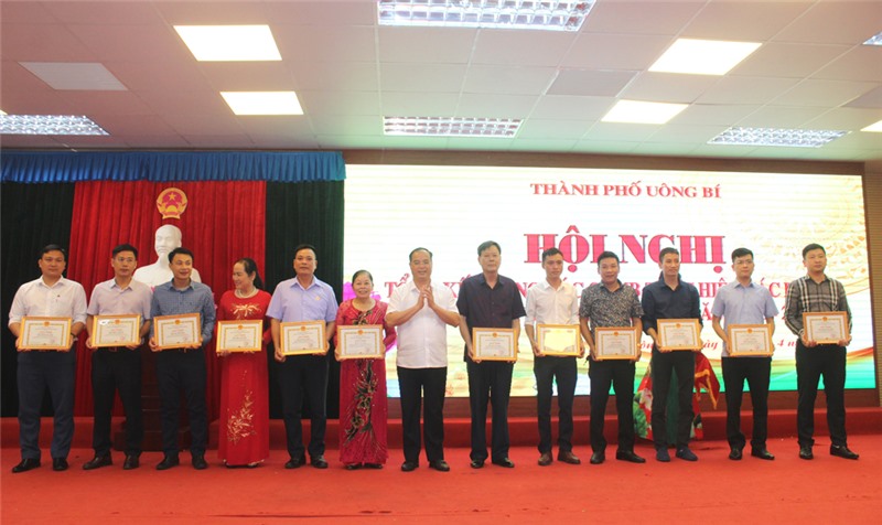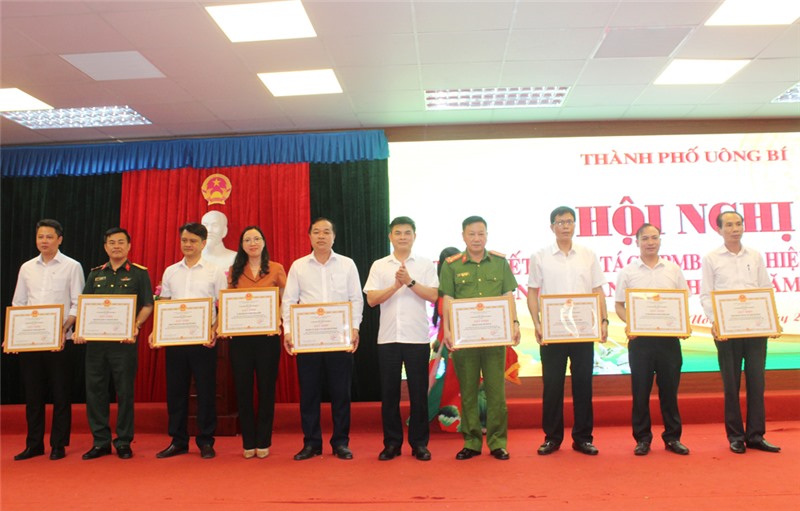 Tại hội nghị, UBND TP Uông Bí đã khen thưởng cho 9 tập thể và 34 cá nhân có thành tích xuất sắc trong thực hiện công tác GPMB thực hiện các dự án năm 2020-2021.