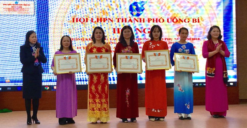 Nhân dịp này, 7 cá nhân tiêu biểu đã vinh dự nhận Kỷ niệm chương Vì sự phát triển của phụ nữ Việt Nam. TW Hội LHPN Việt Nam, Hội LHPN tỉnh, thành phố, UBND thành phố Uông Bí đã khen thưởng 18 tập thể, 52 cá nhân có thành tích xuất sắc trong hoạt động công tác hội và phong trào phụ nữ năm 2018.