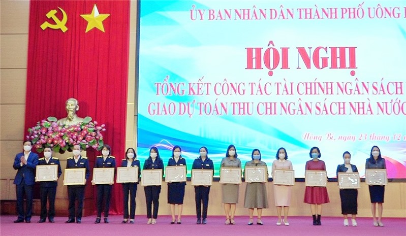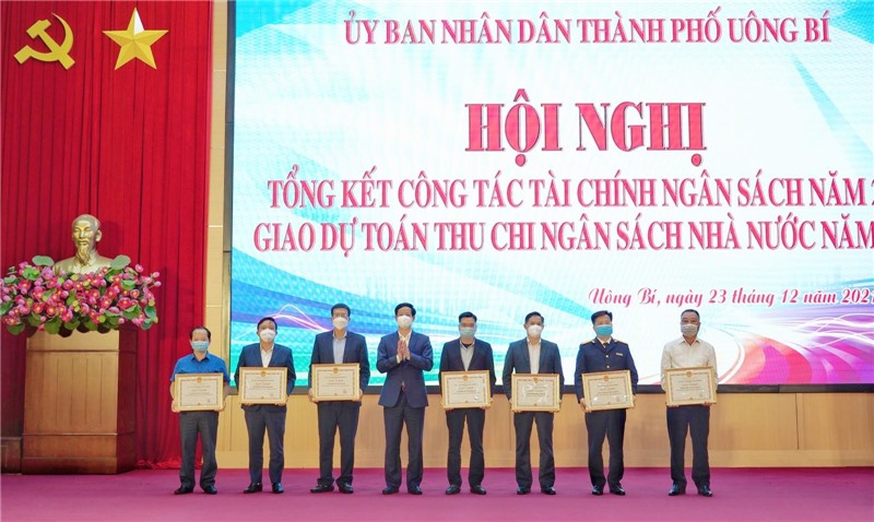Nhân dịp này, UBND thành phố Uông Bí đã khen thưởng 7 tập thể và 32 cá nhân có thành tích xuất sắc trong công tác thu thuế, công tác tài chính - ngân sách năm 2021.