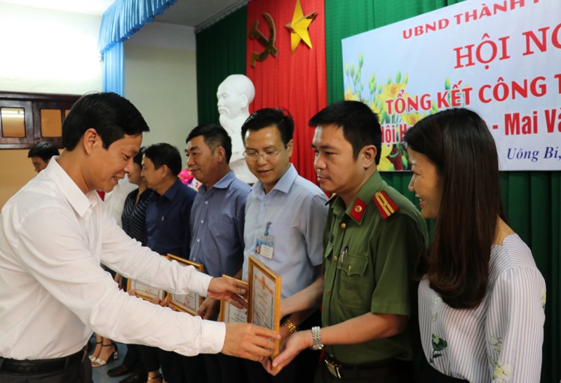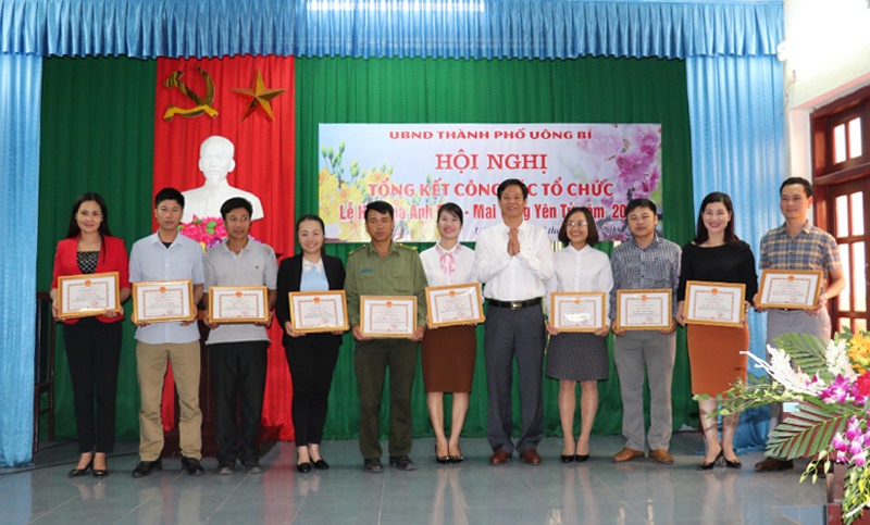Nhân dịp này, thành phố đã biểu dương, khen thưởng 11 tập thể, 31 cá nhân có thành tích xuất sắc trong công tác tổ chức Lễ hội Hoa Anh Đào - Mai Vàng Yên Tử năm 2018.