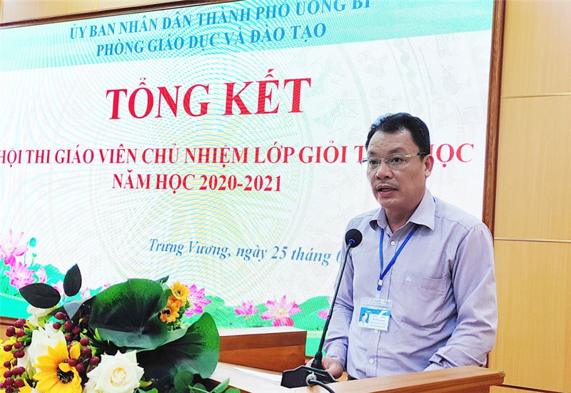 Đồng chí Trần Nam Hải, Phó trưởng phòng GD-ĐT thành phố, Trưởng BTC hội thi tổng kết kết quả hội thi.