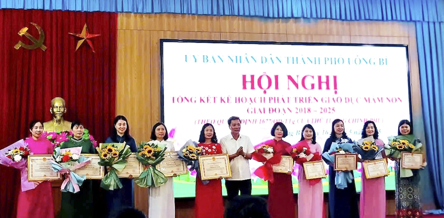 Tại hội nghị, UBND thành phố đã khen thưởng cho các tập thể và cá nhân có thành tích xuất sắc trong triển khai Kế hoạch phát triển giáo dục mầm non giai đoạn 2018-2025.