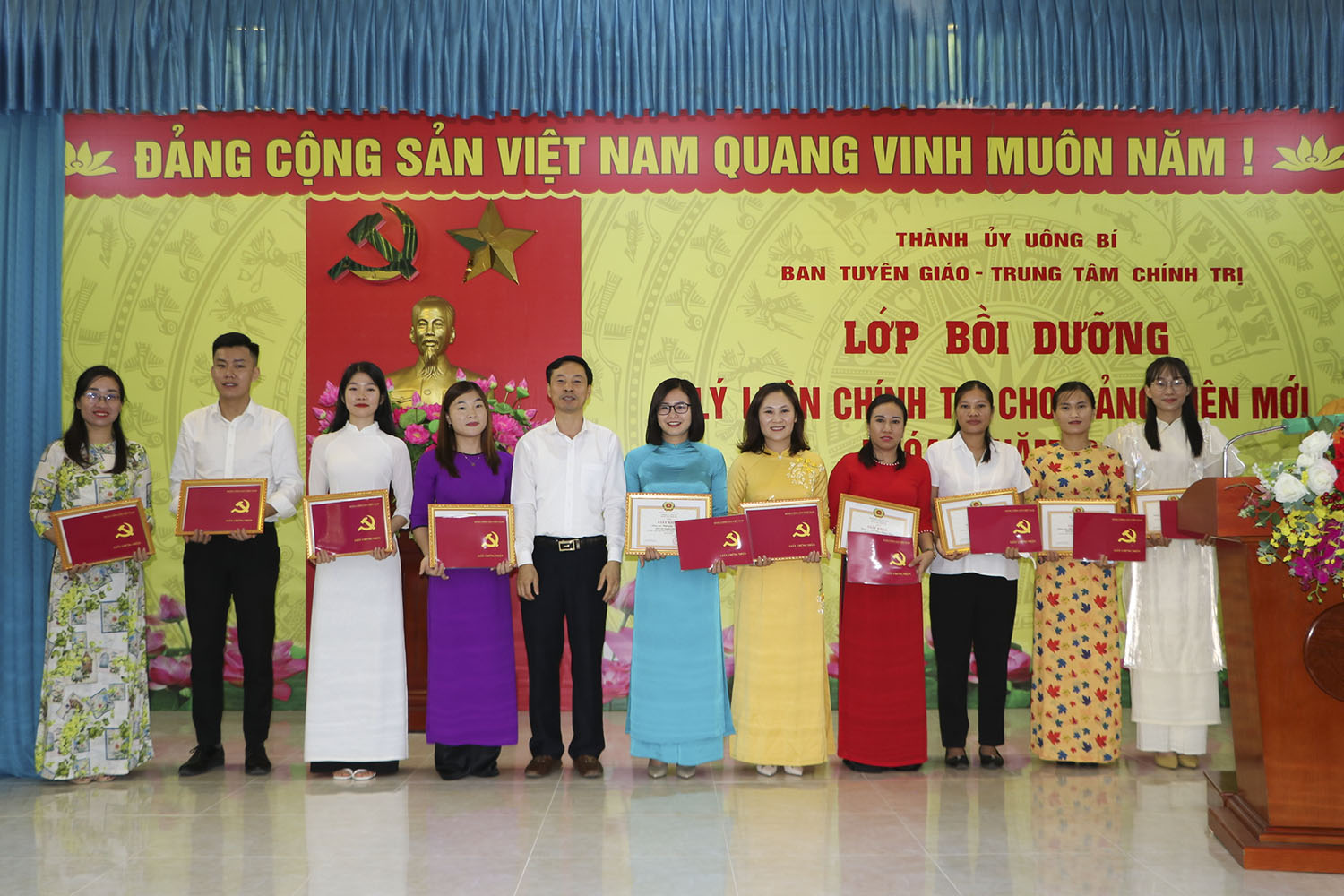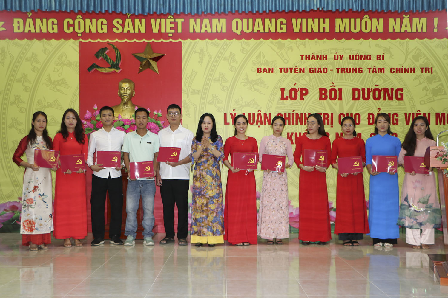 BTC trao giấy chứng nhận hoàn thành khoá bồi dưỡng lý luận chính trị cho đảng viên mới.