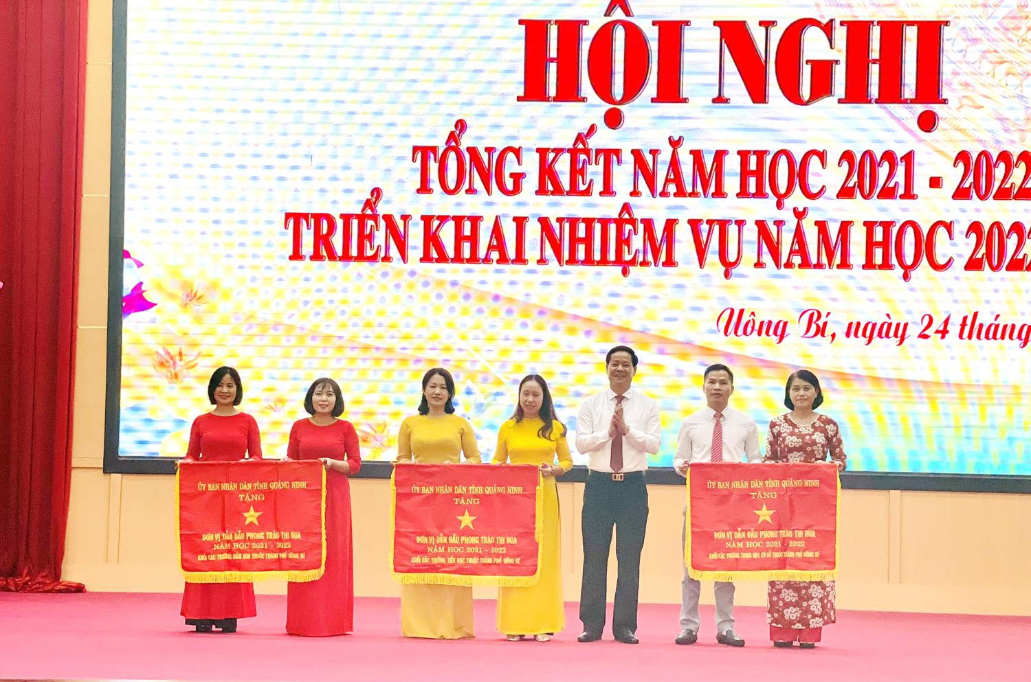 Trường Mầm non Bắc Sơn, Trường TH Lý Thường Kiệt, Trường THCS Trần Quốc Toản nhận cờ đơn vị dẫn đầu thi đua do UBND tỉnh trao tặng.