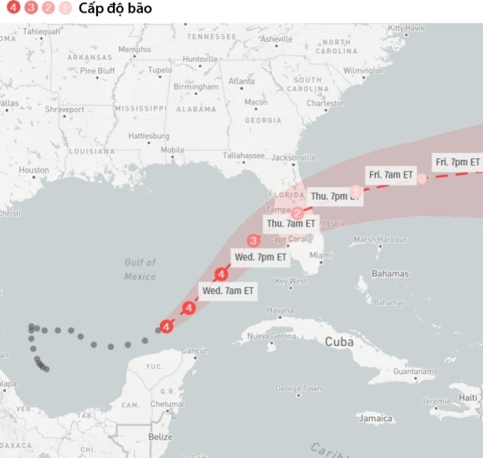 Dự báo đường đi của bão Milton. Đồ họa: CNN