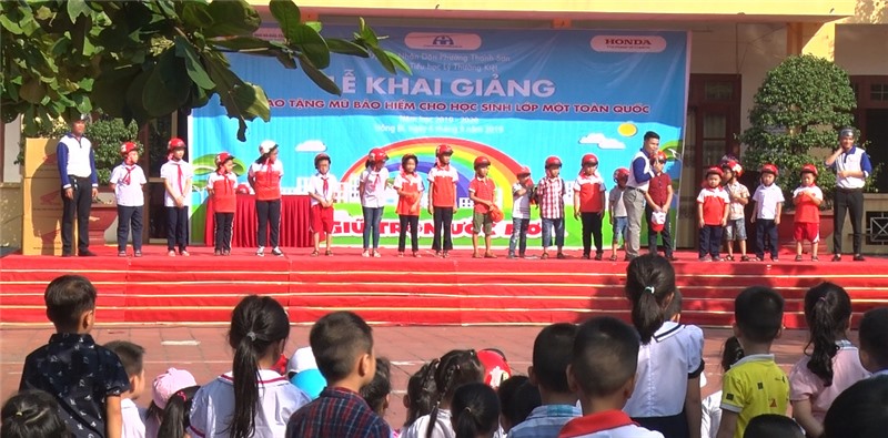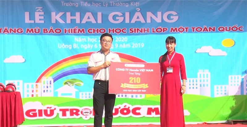 Ngày 6-9 tại Trường Tiểu học Lý Thường Kiệt, Công ty Honda Việt Nam phối hợp với Phòng Giáo dục - Đào tạo, Ban An toàn Giao thông thành phố tổ chức tặng mũ bảo hiểm cho 210 em học sinh lớp 1 nhân dịp khai giảng năm học mới 2019-2020.