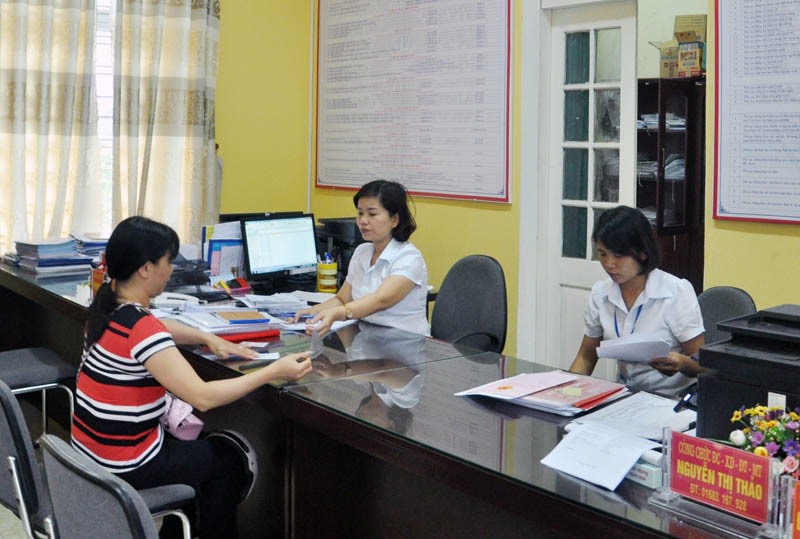 Giải quyết thủ tục hành chính cho công dân ở Bộ phận tiếp nhận và trả kết quả hiện đại phường Thanh Sơn (TP Uông Bí). Ảnh: Bảo Bình.