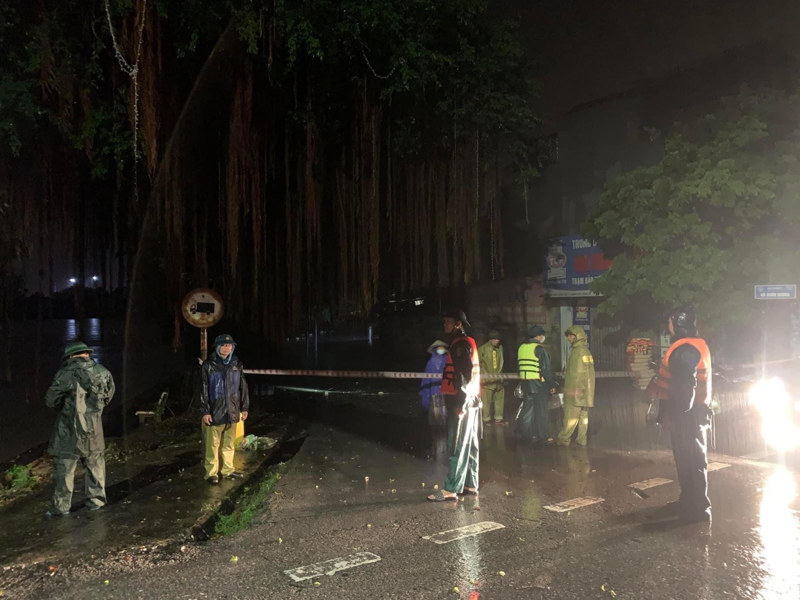 Tại các điểm ngập trũng, sạt lở các lực lượng đã chăng dây cảnh báo người dân và xử lý, khơi thông…