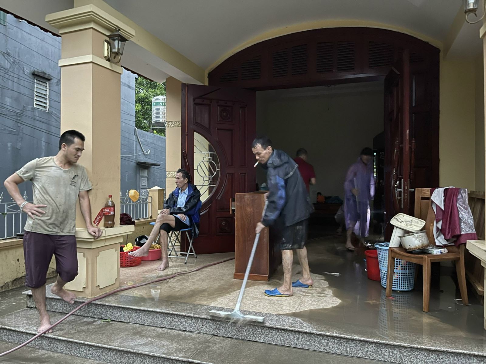 Đến thời điểm hiện tại, mưa đã ngớt, nước đang rút dần, người dân tiến hành dọn dẹp nhà cửa.