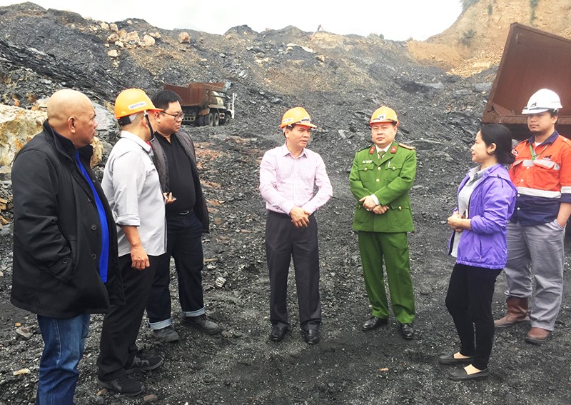Đồng chí Bí thư Thành ủy Uông Bí Trần Văn Lâm kiểm tra thực địa khai trường Công ty PT Vietmindo Energitama thời điểm đơn vị này đang tranh chấp với Công ty TNHH Đầu tư xây dựng hạ tầng và khai thác mỏ Tân Việt Bắc.