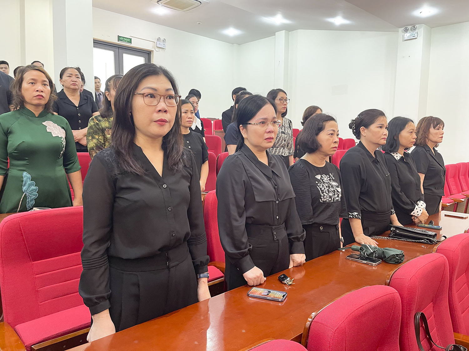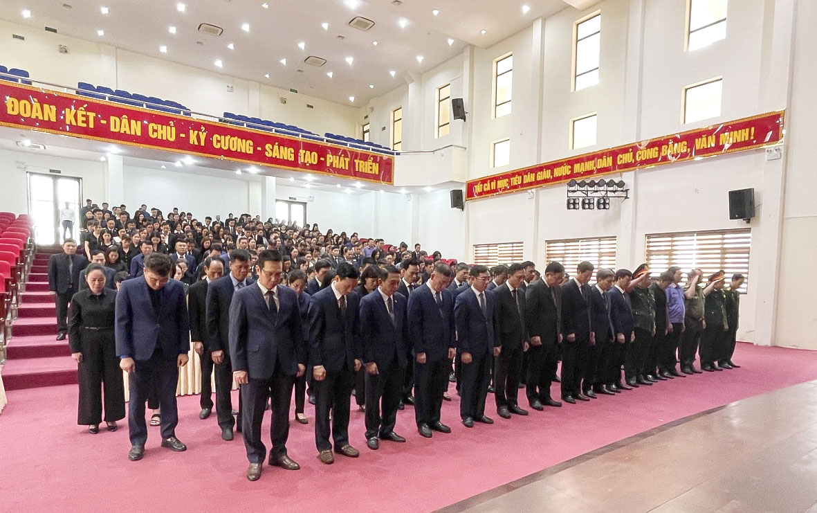 Trong không khí trang nghiêm thành kính, các đại biểu dành 1 phút mặc niệm tưởng nhớ Tổng Bí thư Nguyễn Phú Trọng.